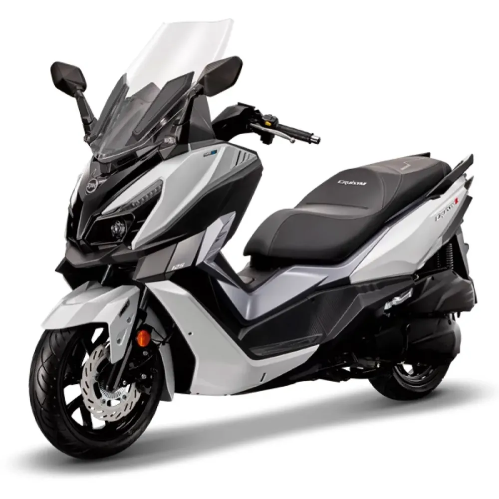 Su frontal en forma de flecha y las esbeltas líneas de su carrocería le dan un aspecto imponente y elegante, y detalles como el reposapiés revestido en símil de fibra de carbono lo dotan de un toque de exclusividad.