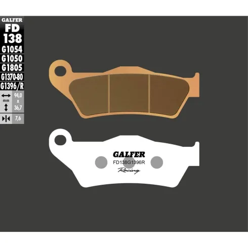 Las Galfer FD138 sinterizadas Racing están desarrolladas para ofrecer un rendimiento superior en condiciones extremas. Ideales para motos de enduro, motocross y rally, garantizan una frenada potente, progresiva y estable incluso con altas temperaturas o barro.