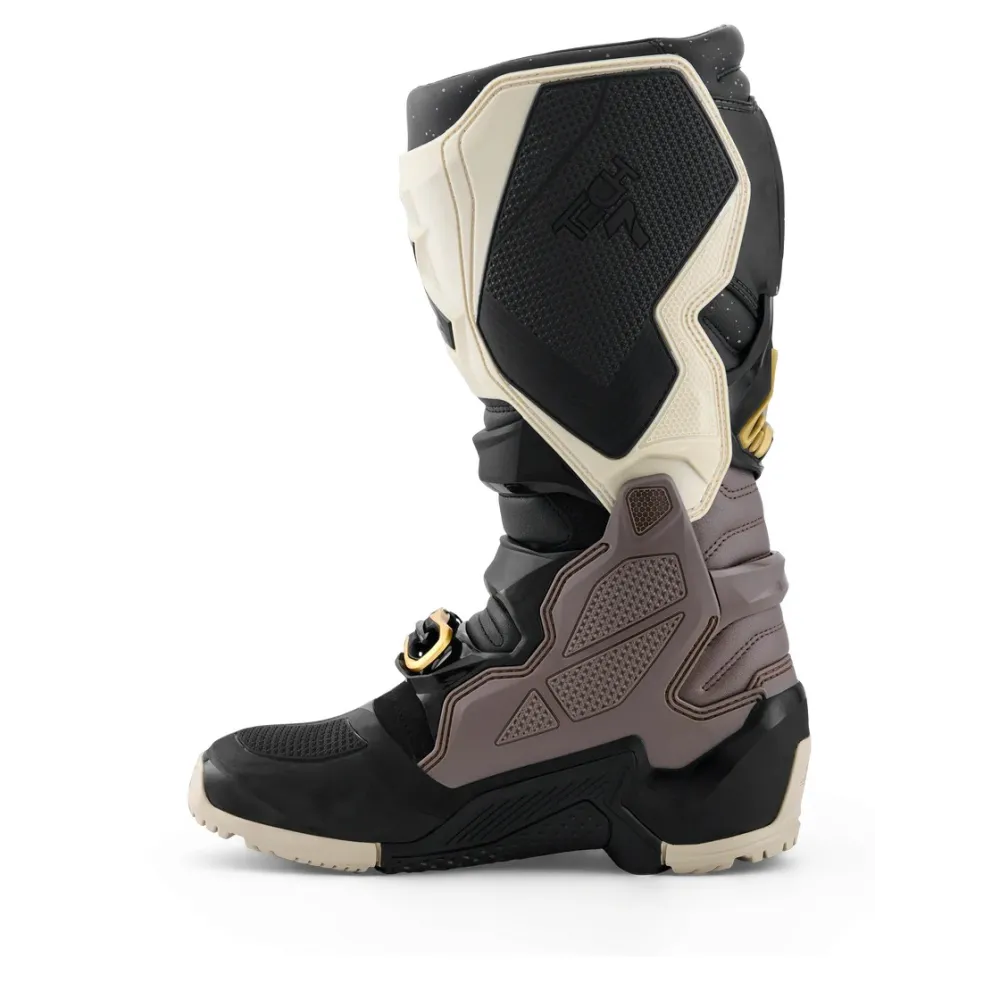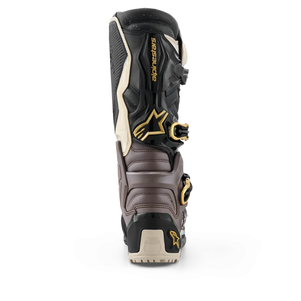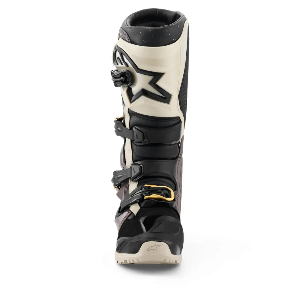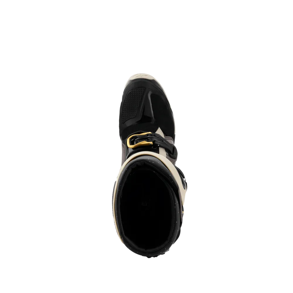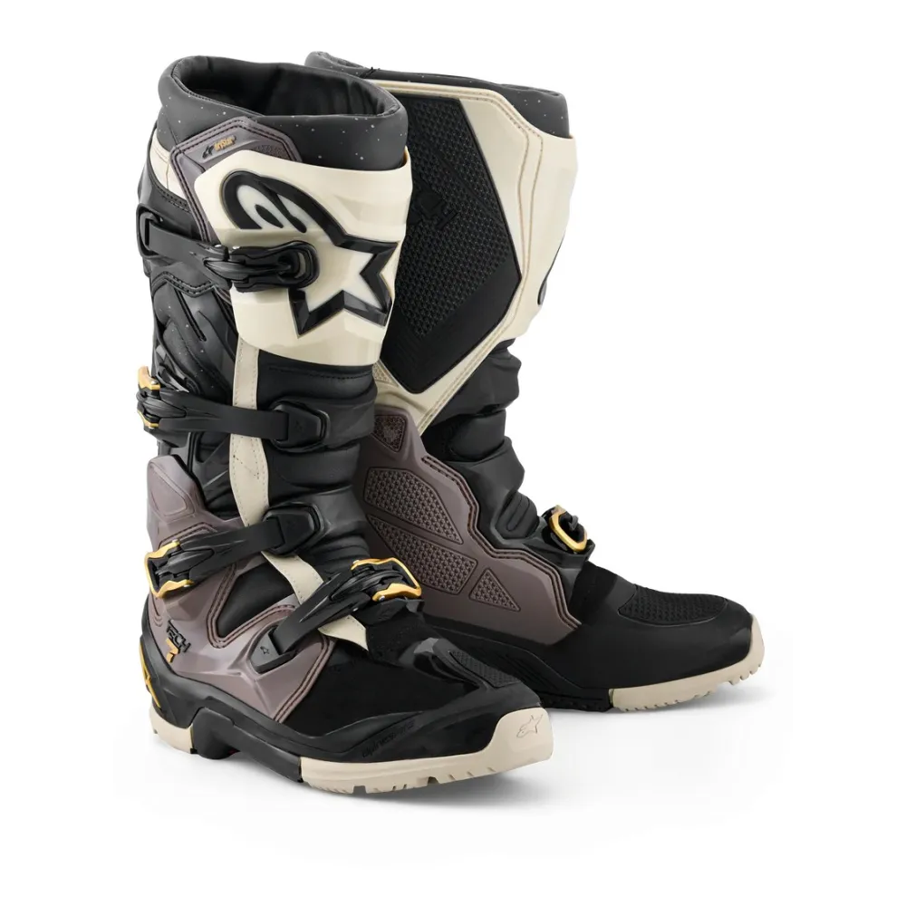 Las botas Alpinestars Tech 7 Enduro Drystar® 2026 en acabado Negro, Beige y Dorado combinan tecnología de vanguardia, seguridad y confort para riders de enduro que no aceptan concesiones. Incorporan la prestigiosa membrana Drystar® 100% impermeable y transpirable, ideal para condiciones climáticas adversas, y una estructura optimizada para absorción de impactos, movilidad y contacto directo con la moto.