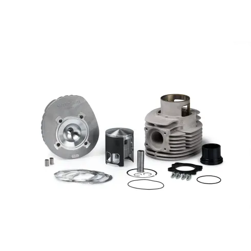 Cilindro en aluminio de diámetro 68,5 mm. , de 7 transfers, con culata , pistón de un segmento cromado y bulón de 16 mm.