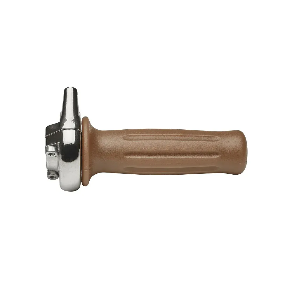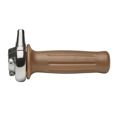 Acelerador de aluminio con puños de color marrón arena cerrados.