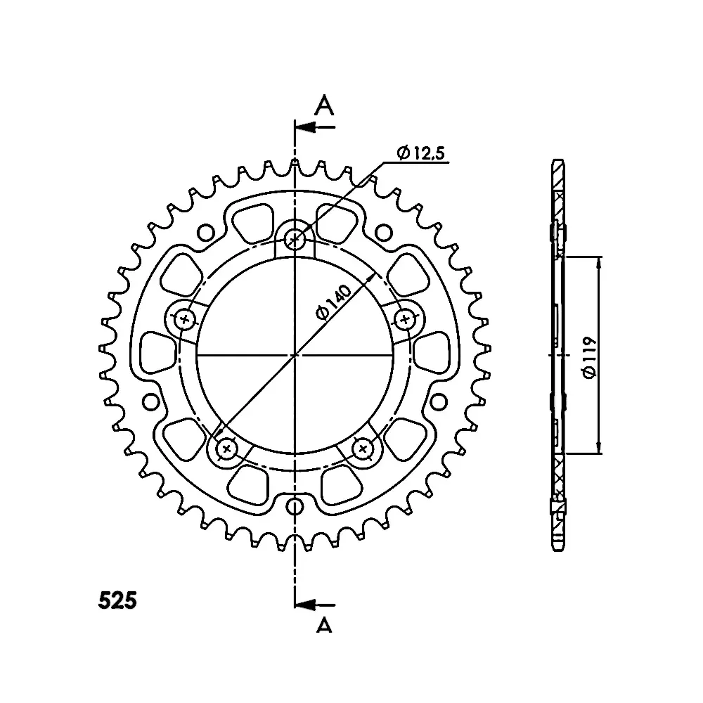 Corona Stealth negra en cuerpo de aluminio y 44 dientes de acero