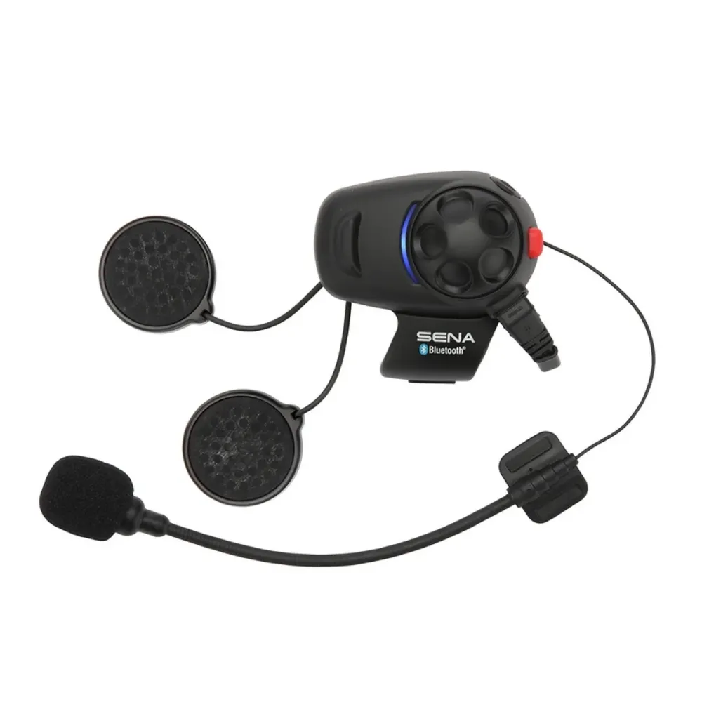 El SENA SMH5 es un intercomunicador Bluetooth® 5.1 diseñado específicamente para motociclistas que buscan mantenerse conectados sin complicaciones durante el trayecto. Con una interfaz intuitiva compuesta por un mando giratorio versátil y un botón grande de fácil acceso, puedes manejar todas las funciones del dispositivo sin quitar la vista de la carretera.