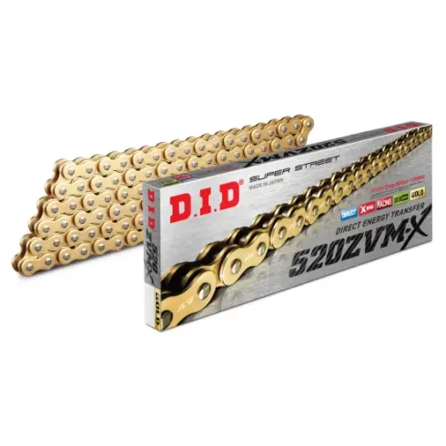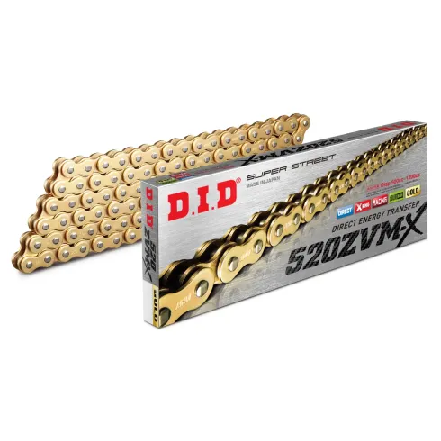 La serie D.I.D ZVM-X utiliza nuestro retén X-Ring patentado, tiene mayor resistencia que la serie VX y está diseñada para motocicletas pesadas con mayor torque y potencia.