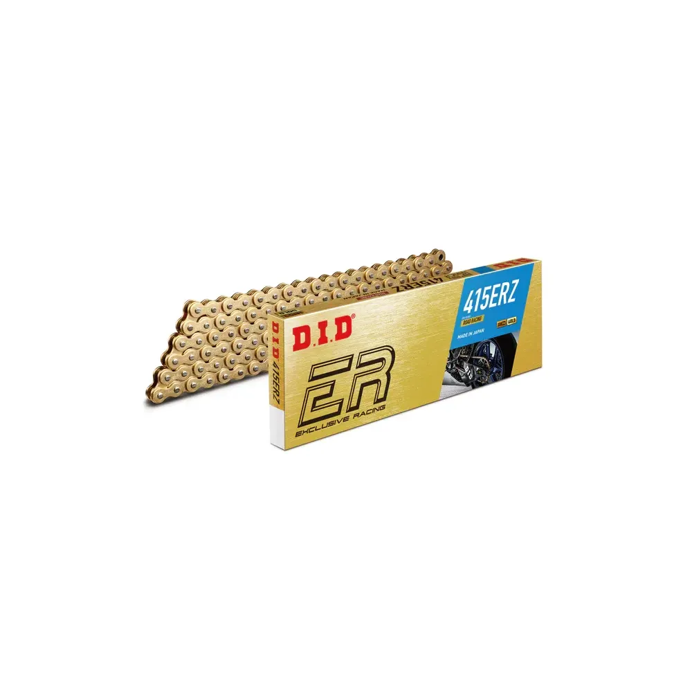 La cadena no sellada 415ERZ de D.I.D es parte de la exclusiva serie Racing diseñada para motocicletas Mini MX y Road Racing por igual