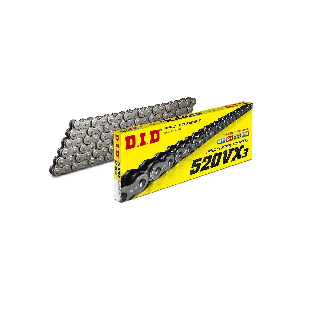 La cadena de la serie VX es un excelente recambio de la cadena OEM y es la más popular y utilizada tanto en motocicletas de carretera como Off-Road.