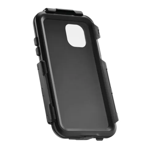 Específica para cada modelo de smartphone, no impide el uso de los botones ni la cámara. Orificio pasacable para carga. Revestimiento interno de silicona antiarañazos. Película frontal transparente que no altera las funciones táctiles. Gancho de seguridad incluido. Específica para soportes de la línea Optiline