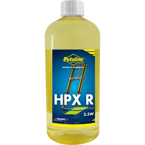 HPX R 2.5W es un aceite para horquillas avanzado. El producto está compuesto por aceites especiales de base sintética altamente refinados. La adición de los aditivos más avanzados convierte al HPX R 2.5W en un producto de alta tecnología ideal para competición. El aceite para horquillas HPX R 2.5W evita la corrosión, la oxidación, fugas en juntas y la formación de espuma. Es especialmente adecuado para motocicletas de competición de carretera, todoterreno, o de las modalidades cross enduro o trial.
